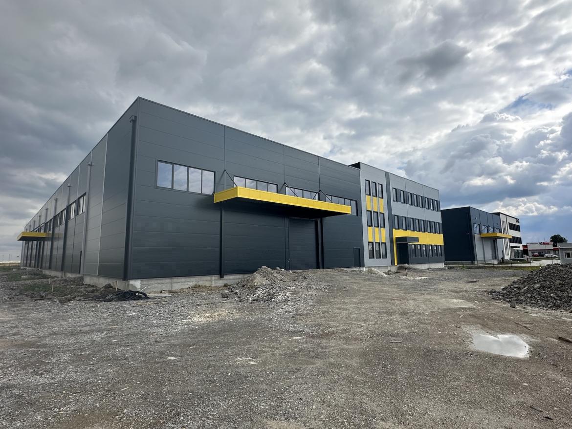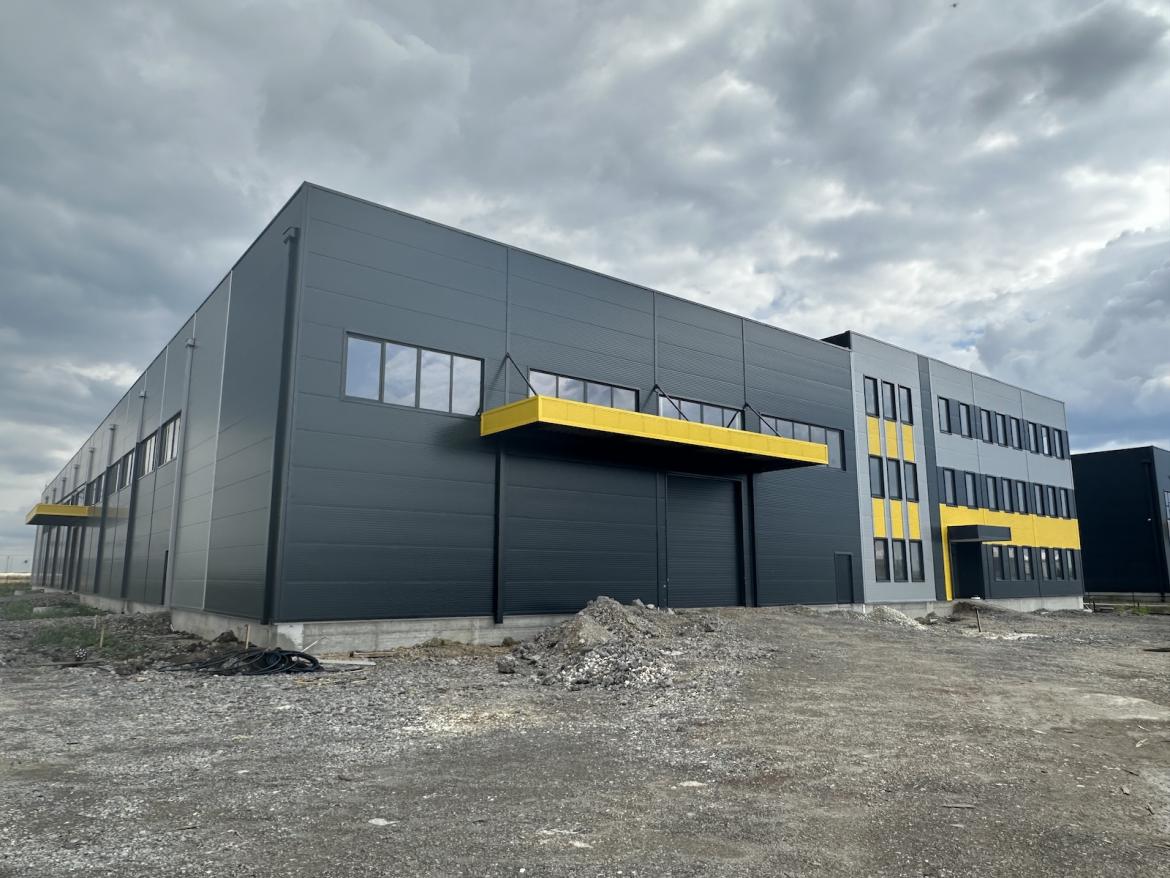 In final fase of civil works, an industrial facility with a total area of 6,500 m², including 900 m² of office space and 5,600 m² of production and warehouse space, with a parking area and internal road network.